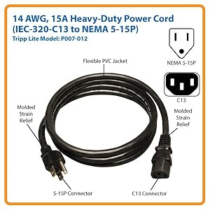 So you can check out the other reviews 🔥 Flаѕh Sаlе Tripp Lite Heavy Duty Computer Power Cord, 15A, 14AWG (NEMA 5-15P to IEC-320-C13), 12-ft. (P007-012) Black at Amazon.com